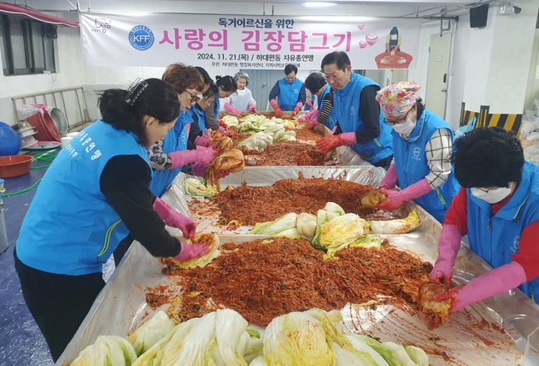 한국자유총연맹 성남시지회 하대원동 위원회(위원장 임재국)는 11월 21일 하대원동 주민센터에서 독거 어르신을 위한 「사랑의 김장 담그기」 행사를 개최했다.