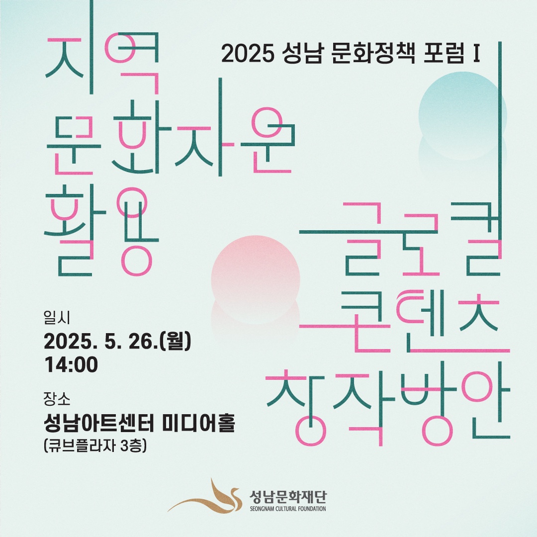 성남문화재단 윤정국 대표이사는 "이번 포럼은 지역의 문화자원을 창의적인 콘텐츠로 발전시킬 수 있는 아이디어와 실행방안을 모색하는 자리가 될 것"이라며 "이를 통해 성남이 글로컬 문화도시이자 미래 예술 중심도시로 나아가는 출발점이 되길 기대한다"고 말했다.