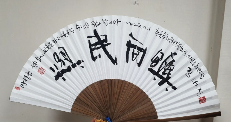 김 원장께서는 안 국장에게 시민과 즐거움을 함께 나누는 행정’을 바라시며, '여민동락'(與民同樂) 부채 캘리 휘호를 선물하셨습니다.