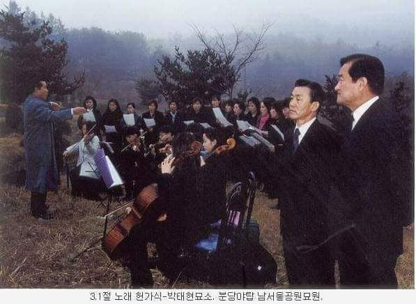 박태현 작곡가 와 3.1절 노래 헌가식에서 김성태 성남예총 전)회장, 김병량 성남시장, 박용준 지휘자와 성남청소년오케스트라 단원들