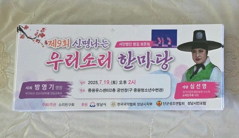 이번 공연을 마련한 심선영 대표는 “무더위와 폭염 속에서도 성남시 전통 문화예술을 사랑하는 시민들을 위해 신명나는 우리소리 한마당을 준비했다” 며 “감동과 신명을 시민여러분들께 선사하겠다”며 출연진과 관계자 모두에게 감사의 인사를 전했다.