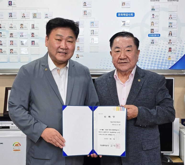 김대진 성남문화원장(한국문화연합회장)은, 8월 7일 문화원장실에서 성남시민으로 중국 심양시에서 25여년간 무역사업을 하며, 성남시와 국제 자매도시인 심양시와 문화예술 교류 증진에 애쓰시는,