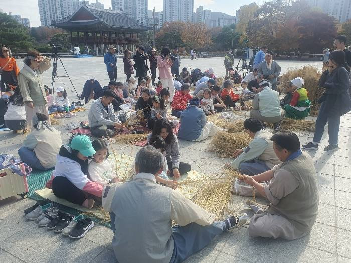 #이무술집터다지는소리보존회(이사장 방영기) 주관, #이엉엮기 는 추수한 후에 볏짚을 엮어 지붕을 덮는 작업으로, 그동안 100여 가족이 참가해서 조상들의 지혜를 배우는 체험행사로 진행됐습니다.