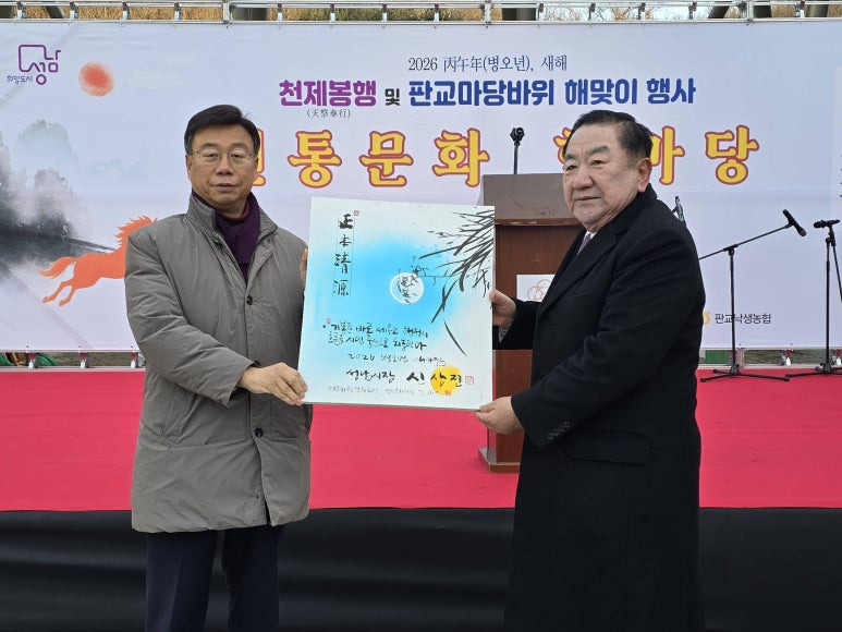 성남문화원(원장 김대진)과 판교마당바위 해맞이축제위원회(위원장 박팽수)는, 병오년 새해를 맞아 '2026년 천제봉행(天祭奉行) 및 판교마당바위 해맞이 행사'가, 김대진 원장, 신상진 성남시장과 3000여 명의 시민들이 함께한 가운데 성료됐다.