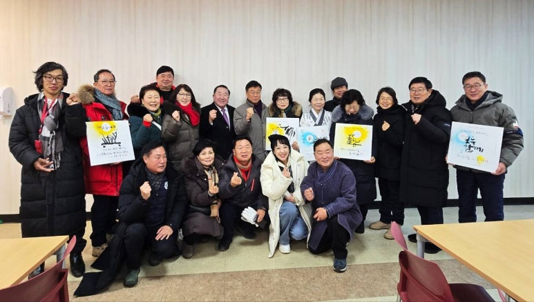 김대진 원장이 신싱진 성남시장 2026년 사자성어 '정본청원' 휘호 선물