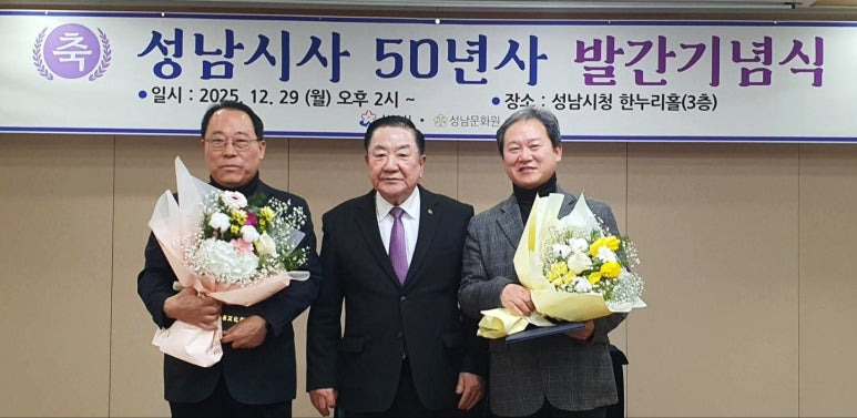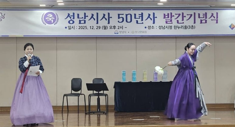 성남문화원(원장 김대진 한국문화원연합회장)은, 2025년 12. 29(월) 성남시청 3층 한누리실에서 성남시사(50년사) 발간기념식 개최했다.